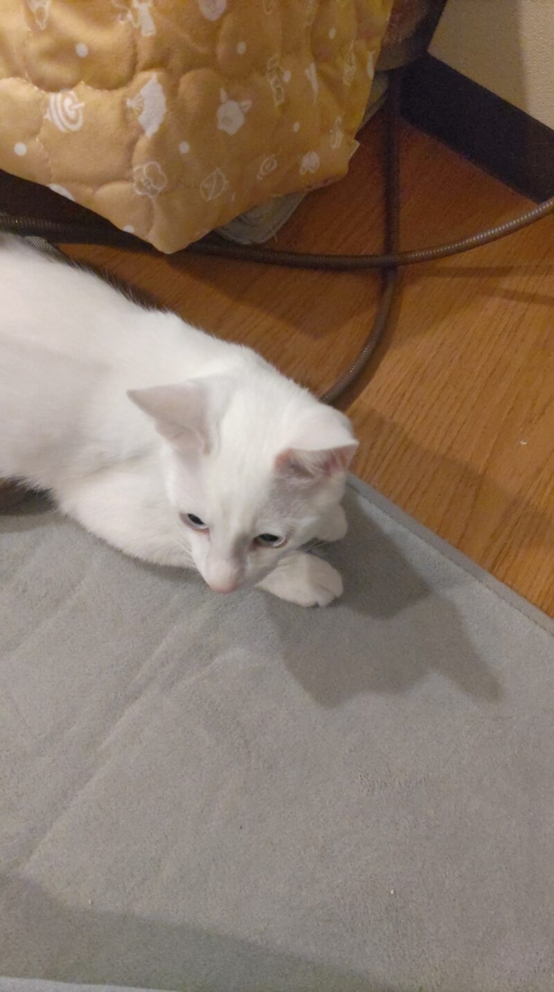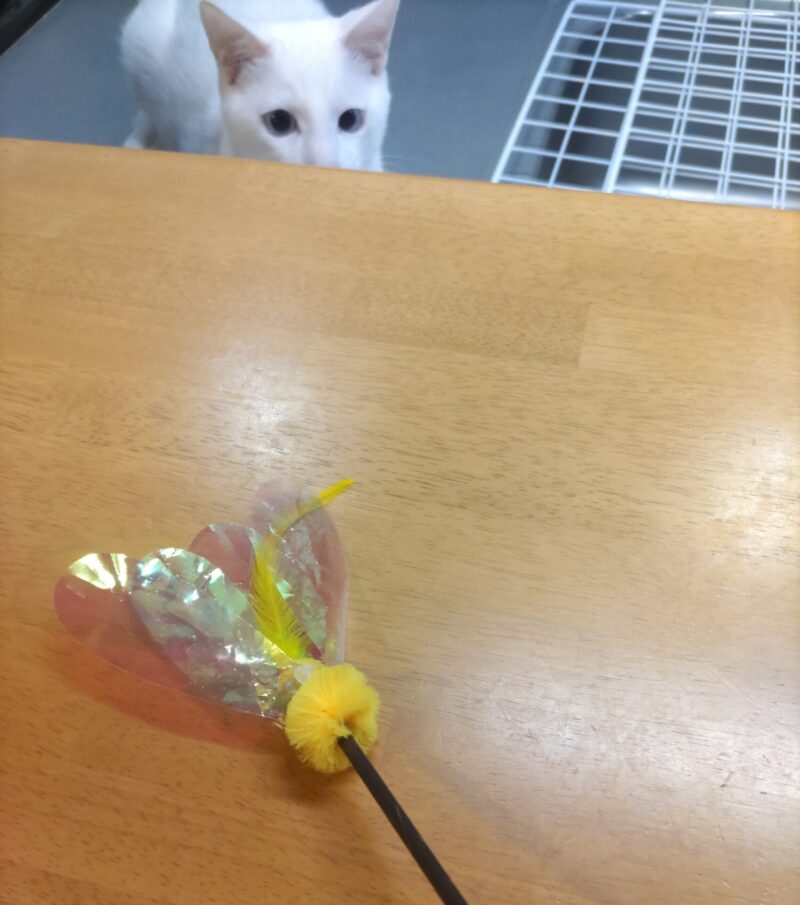 その後は、おもちゃにも少し興味を向ける余裕がでて、落ち着いた表情も見せてくれて、お留守番頑張ってました👏😊