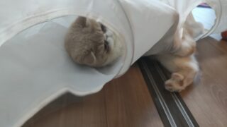 こてつちゃんはカーテン裏に隠れたり、距離を取りながら様子を見にきたりと、自身でいい距離感を取ってくれていました!