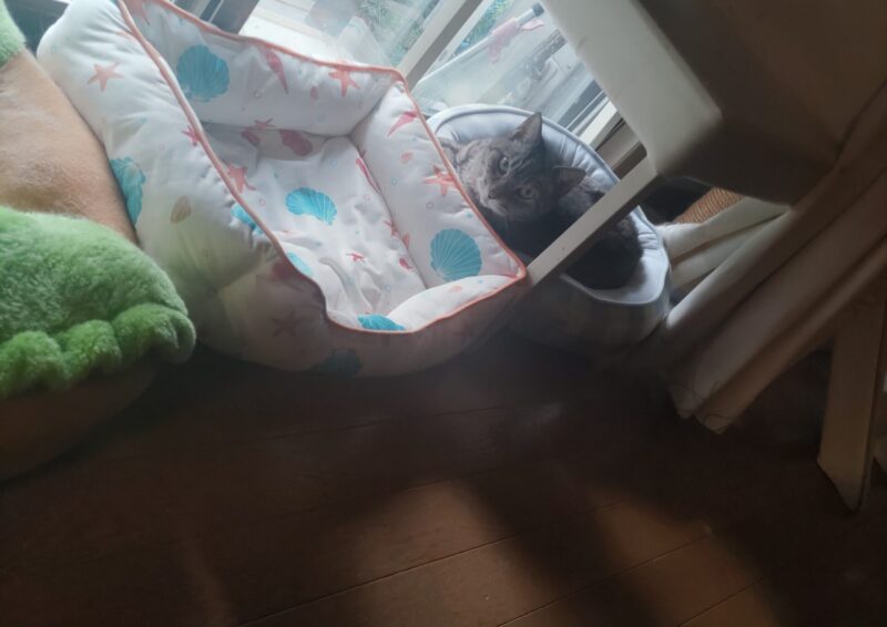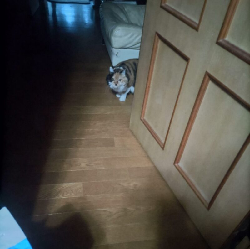初日はミャーちゃんは姿確認できるも、フーちゃんは軽く見渡す程度では姿はなく、ごはんや排泄状況での健康チェック!