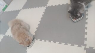 いつも先に食べ終わって、ぽんたちゃんが食べているところをチェックしてます!!